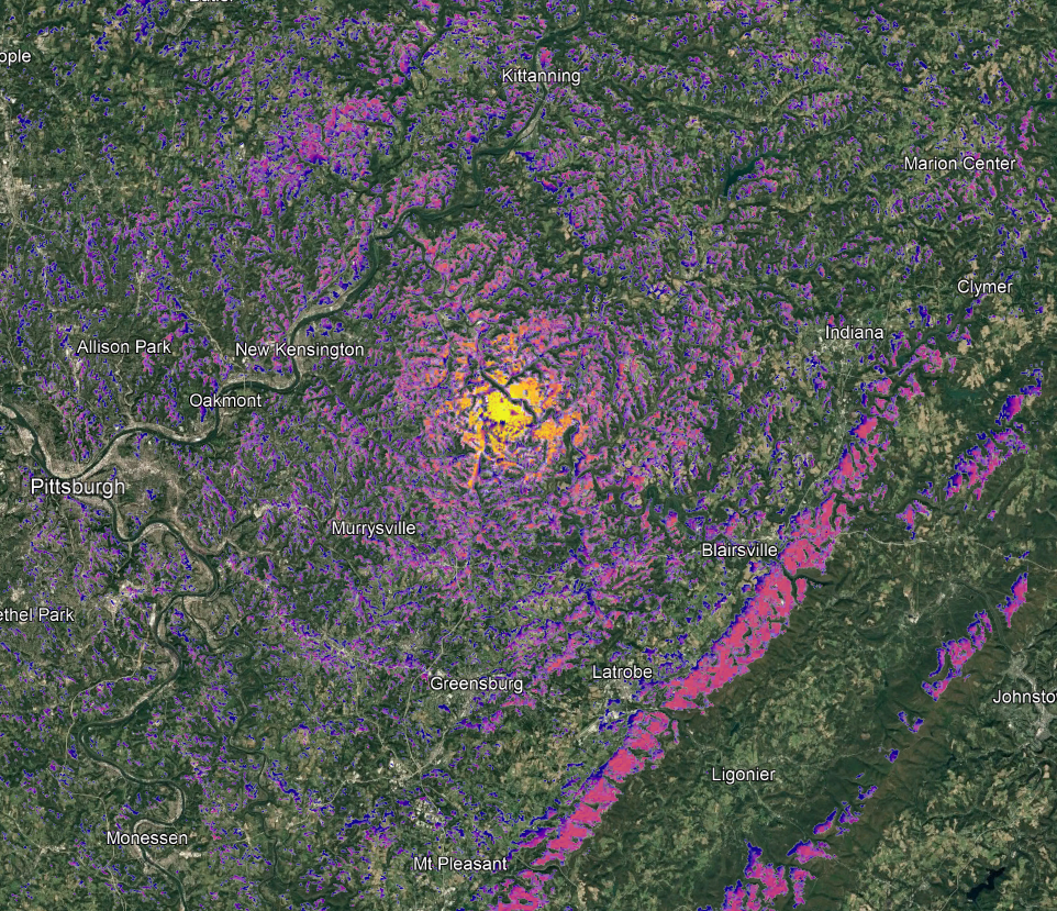 Apollo has a very wide area visible and therefore acts as the first-hop priority to nodes in Murrysville, Plum, Delmont, Vandergrift, and some higher altitudes in Latrobe, Greensburg and Kittanning.